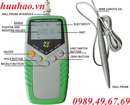 - Thiết kế của đồng hồ Tesla kỹ thuật số cầm tay tuân theo tiêu chuẩn an toàn IEC-61010-1 và phù hợp với quy định xác minh quốc gia của đồng hồ Tesla JJG242-1995. - - Máy đo Tesla kỹ thuật số cầm tay TD8620 không chỉ sử dụng cảm biến Hall độ nhạy cao và chip chuyển đổi A / D độ phân giải cao mà còn sử dụng công nghệ máy tính chip đơn phổ biến và công nghệ lọc kỹ thuật số. Nó có ưu điểm là độ nhạy cao, đọc ổn định, tiêu thụ điện năng thấp và trọng lượng nhẹ. Phạm vi đo lường là 0-2000 Mt, Nó có các đặc điểm của số không tự động, phạm vi đo lường tự động, giữ các giá trị tối đa / nhỏ nhất, v.v.