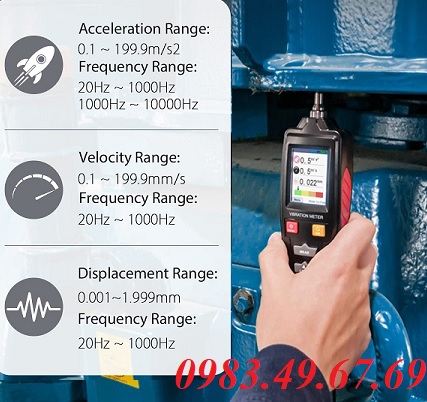 Máy đo độ rung hiển thị 3 thông số và cảnh báo ngưỡng rung WT63B